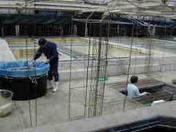 孵化したノープリウス幼生を200キロリットルの水槽に収容します。